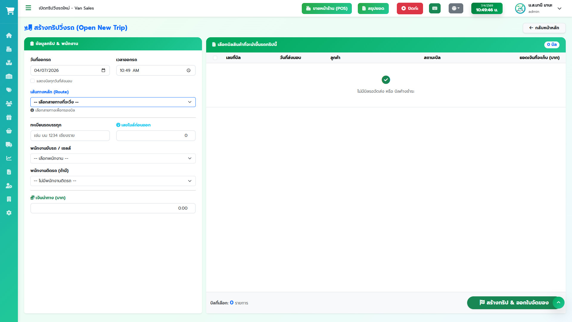 ดึงบิลเข้าทริป (Order Assignment): เลือกว่าทริปนี้จะวิ่งไปส่งบิลไหนบ้าง และจะไปตามเก็บหนี้บิลไหนบ้าง